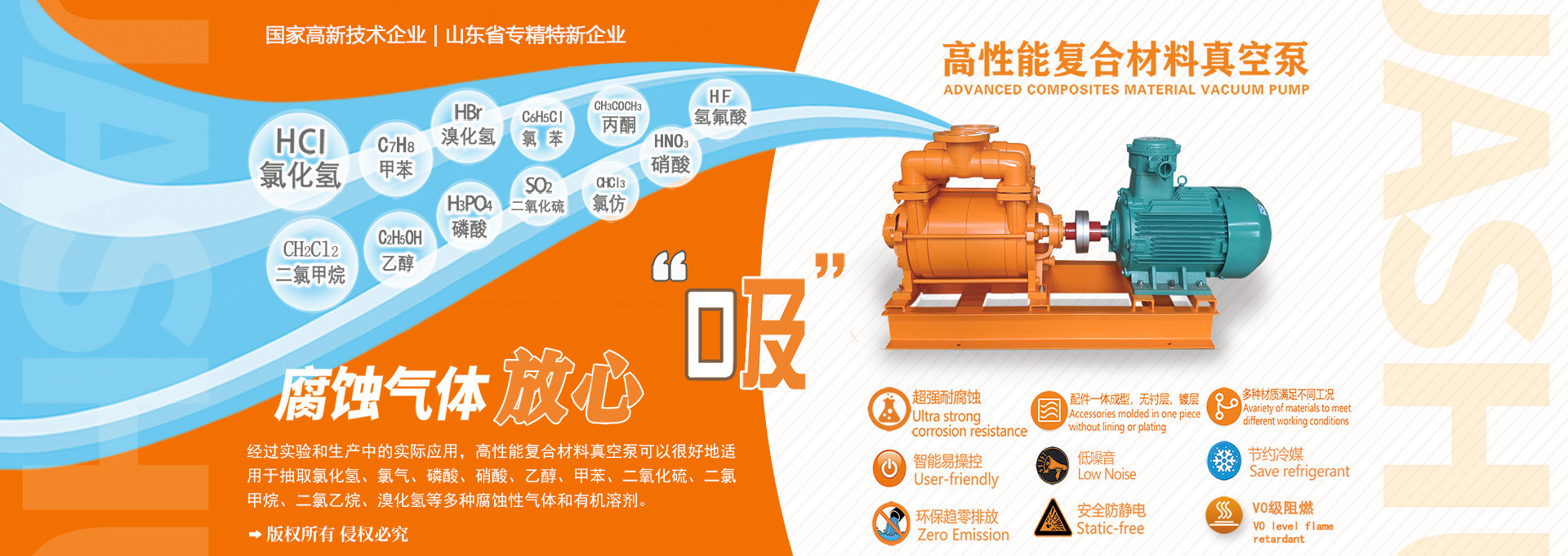 淄博華舜耐腐蝕真空泵有限公司所生產的防腐水環泵,防腐蝕水環泵,耐腐蝕水環泵等產品,產品過流部件采用三大系列高性能復合材料(HS-V130、HS-V110、HS-V80)一體成型,耐腐蝕范圍廣、無襯層不脫落、節能效率高、運行可靠、環保節水、 體積小、重量輕、使用壽命長等特點。 淄博華舜耐腐蝕真空泵有限公司是一家集科研開發、設計咨詢、生產、銷售、服務于一體,利用新型高性能復合材料,專業生產耐腐蝕液環真空泵的國家高新技術企業, 坐落于“中國泵業名城”---山東省淄博市博山區,公司通過了ISO9001質量體系認證。公司獨立研發的具有多項自主知識產權的專利產品-耐腐蝕系列水環式真空泵,通過了省級科技成果鑒定,處于“國際先進水平”。 在全體員工的共同努力下,公司榮獲國家高新技術企業、科技創新示范企業、創新型優秀新產品一等獎、科技型中小企業、山東省“專精特新”企業、省級一企一技術研發中心、淄博市專利獎、高價值專利獎、山東省民營經濟知名品牌等榮譽稱號。2021年與山東大學聯合成立海洋耐腐蝕材料聯合實驗室及裝備產學研合作基地。